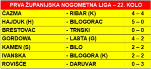 PRVA ŽUPANIJSKA NOGOMETNA LIGA – 22. KOLO