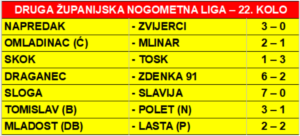 DRUGA ŽUPANIJSKA NOGOMETNA LIGA – 22. KOLO