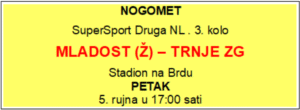 Susretima Mladosti – Trnje i Hrvatski dragovoljac – Grobničan, danas 5. rujna otvara se treće kolo SuperSport druge nogometne lige. Bjelovarskim ljubiteljima nogometa svakako je puno zanimljiviji susret koji će se odigrati na Brdu u kojem Mladost dočekuje Trnje ZG kao veliki favorit.