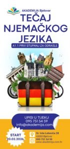 – Poseban naglasak stavljamo na komunikaciju, rad s audio-vizualnim materijalima i konkretnim situacijama iz svakodnevnog života. Vrhunski udžbenici, nastava na njemačkom jeziku i dugogodišnje iskustvo formula su za uspjeh i siguran put do znanja. Tečaj počinje 20. veljače, a upisujemo samo jednu grupu, stoga požurite i rezervirajte svoje mjesto – poručili su iz AKADEMIJE.
