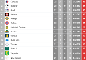 BJELOVAR: Poljak, J. Ćulo, Grubišić 6, Trninić 2, M. Lukačec 1, Jurjević 4, Šimunović 2, Došljak 2, L. Ćulo, L. Lukačec, Saraja, Pedić, Marić 1, Baković 1, M. Kozić 2, Tuković, TRENER: Miroslav Habijanec