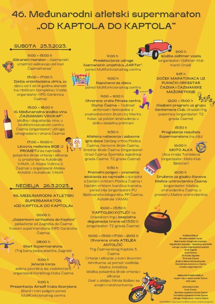 -Županija je i ove godine pokrovitelj supermaratona. Tako će i ostati jer je riječ o događaju koji nije samo sportska, već prepoznatljiva turistička, zabavna i kulturna manifestacija. Ova utrka spaja dva kaptola, zagrebački i čazmanski, spaja dva stara grada, Zagreb i Čazmu, i uvjeren sam da će odaziv kao i svaki put biti odličan – kazao je župan Marušić.