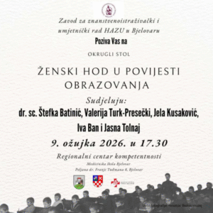 Zavod za znanstveno-istraživački i umjetnički rad Hrvatske akademije znanosti i umjetnosti u Bjelovaru organizira okrugli stol pod nazivom ”Ženski hod u povijesti obrazovanja”, koji će se održati 9. ožujka u 17.30 sati.