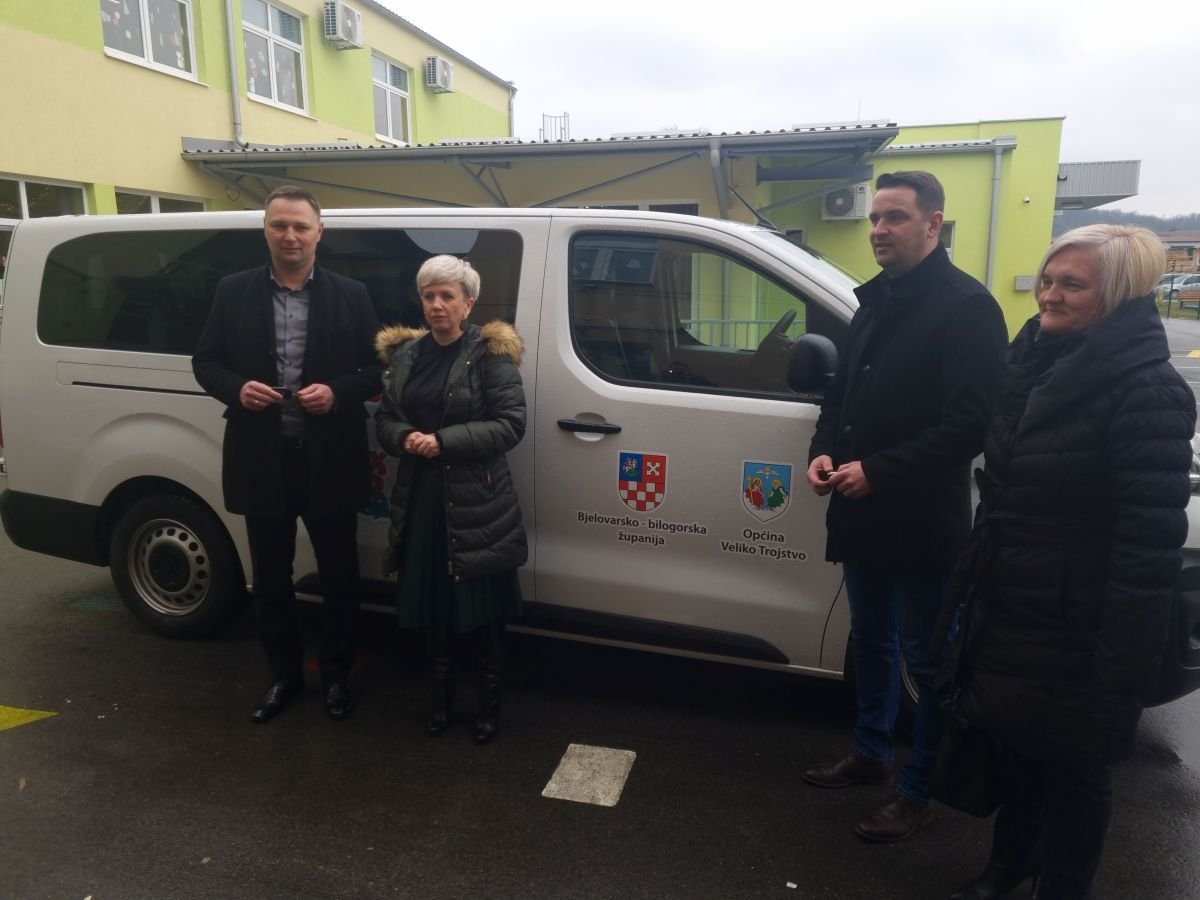 -Županija pomaže tamo gdje je to potrebno, a u ovom slučaju je riječ i prijevozu djece iz pet naselja koja nisu pokrivena školskim prijevozom. Vrijednost ovog kombi vozila koje može primiti 8+1 putnika je 36 tisuća eura i to je prvo takvo vozilo koje smo kupili ove godine. Plan je nabaviti još dva, za Osnovnu školu Berek i Osnovnu školu Daruvar -kazao je župan Marko Marušić i uručio ključeve vozila Sanji Vranješević, ravnateljici Osnovne škole Veliko Trojstvo. Novi kombi je školi donio veliko olakšanje u organizaciji prijvoza učenika.
