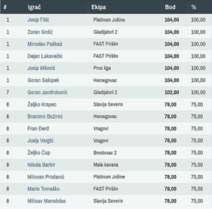 POREDAK IGRAČA NAKON 1. KOLA