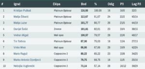 Platinum je dominirao: Šibarić je bio nepogrešiv s 4:0, Torbica je upisao 3:1, Franjić 2:1, a Lazar 2:2. Uz takvu raspodjelu bodova i konstantu u igri, gosti su potpuno kontrolirali tijek derbija i zasluženo odnijeli pobjedu.