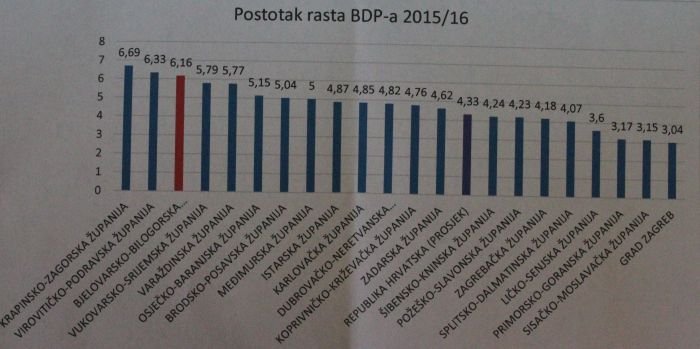 Državni zavod za statistiku objavio je posljednje podatke vezane uz BDP za hrvatske županije za razdoblje 2015./2016. godina po kojima Bjelovarsko-bilogorska županija treća županija u Hrvatskoj po rastu BDP-a. Tend rasta županijskog BDP-a traje od 2013. godine, a u vremenskom razdoblju 2015./2016. BDP je rastao za 6,16 posto. Preliminarni podaci za 2017. i 2018. također ohrabruju jer rastu gospodarske brojke, od broja zaposlenih do ukupnog prihoda županijskog gospodarstva koji je u 2017. sa 6,4 narastao na gotovo 7 milijardi kuna. Zanimljivi su i podaci što je trenutačni motor županijskog gospodarstva koji ga najviše gura naprijed.