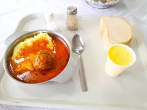 Tako se u ponedjeljak na meniju za doručak našao čaj, pašteta i kruh. Za ručak su bile ćufte, pire krumpir i kruh što možete i vidjeti na fotografiji porcije koju smo snimili.