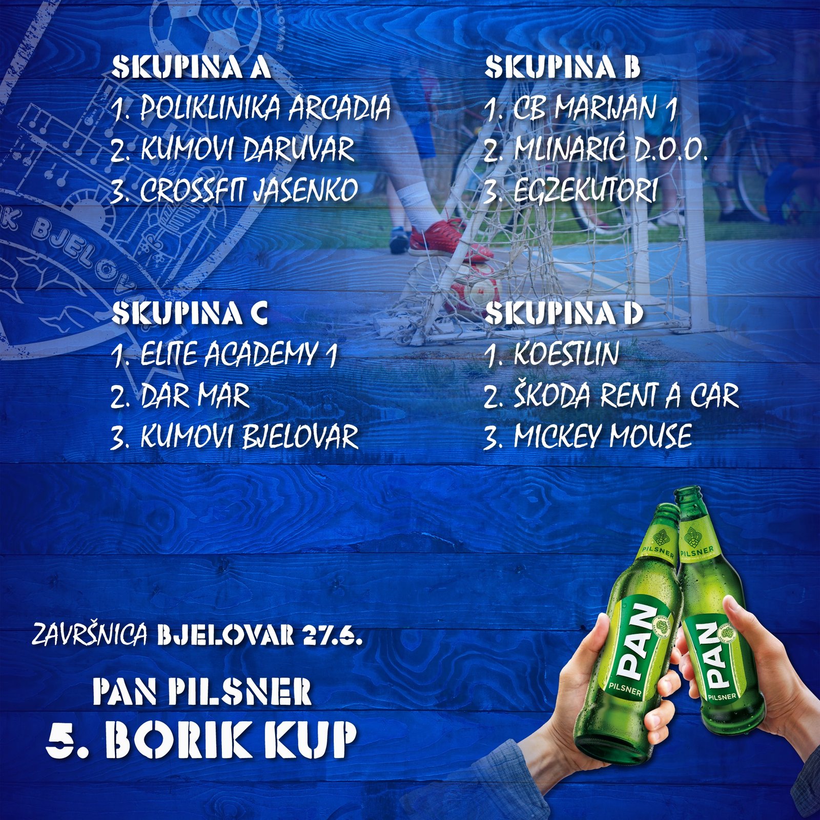 Danas s početkom u 17.30 sati kreće završnica bjelovarskog Pan Pilsner 5. Borik Kupa.
