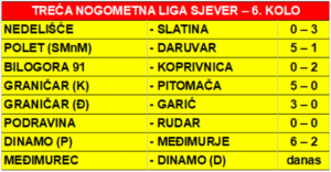 TREĆA NOGOMETNA LIGA SJEVER – 6. KOLO