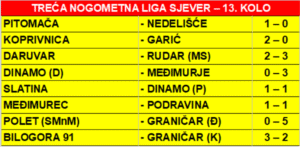 TREĆA NOGOMETNA LIGA SJEVER – 13. KOLO