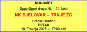 ve ovo govori kako je pred bjelovarskim ljubiteljima nogometa sjajna utakmica u koju NK Bjelovar ulazi kao veliki favorit i koji se pobjedom želi vratiti na pobjedničke staze, dok se Trnje opravdano nada drugoj gostujućoj pobjedi.