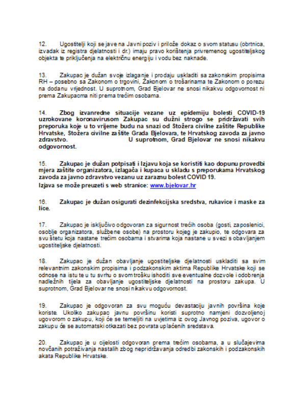 Ugostitelji mogu konkurirati i za Boho park te ugostiteljsko mjesto kod Paviljona za što su također propisani određeni uvjeti.