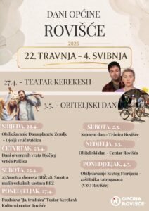 Središnji događaj manifestacije zakazan je za nedjelju, 3. svibnja, kada se održava Obiteljski dan u centru Rovišća.