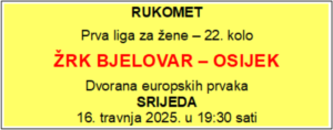 – Da, respektiramo ekipu Osijeka koja ove sezone konstantno igra dobro i koja pored trenera ima i veliku igračku kvalitetu koja duži niz godina igra zajedno. Biti će to dobra i neizvjesna utakmica u kojoj ćemo dati sve od sebe kako bi osvojili nove bodove – najavio je trener Mrđen koji je pozvao bjelovarske ljubitelje rukometa da dođu u dvoranu i svojim navijanje pomognu bjelovarskim rukometašicama da ostvare pobjedu protiv Osijeka.