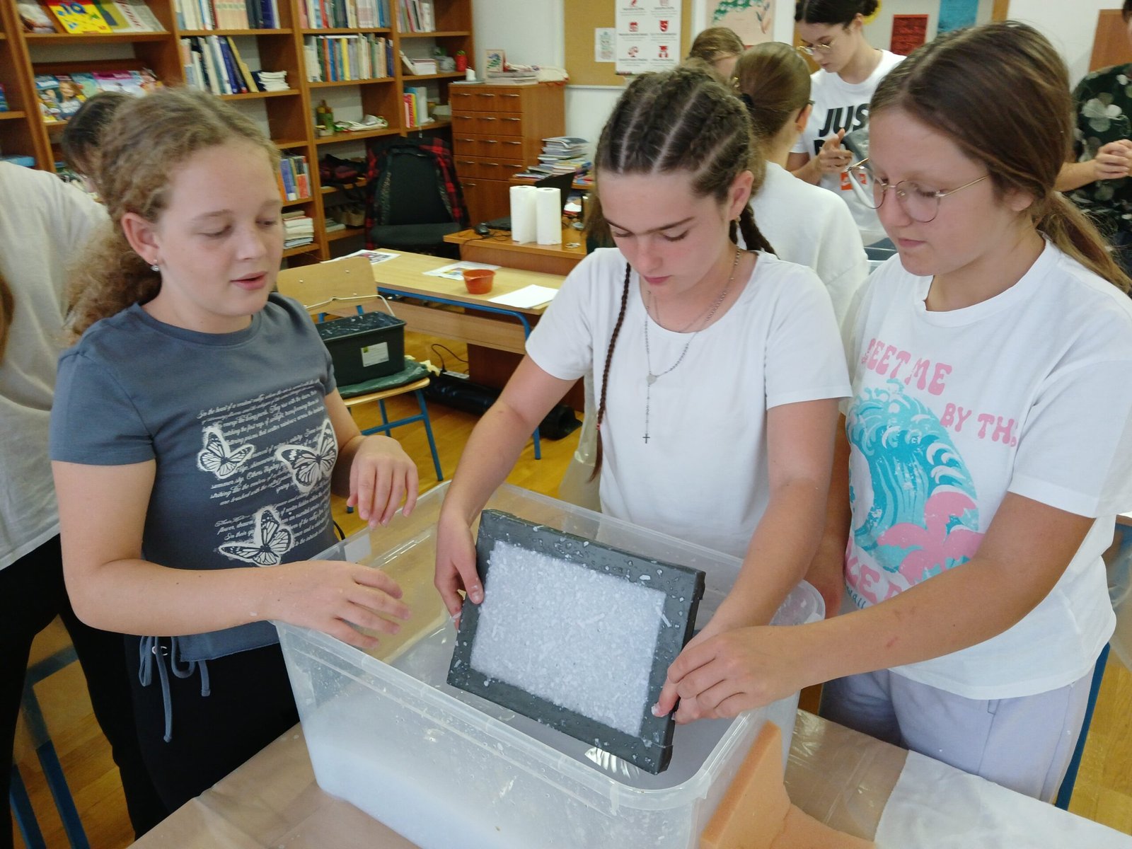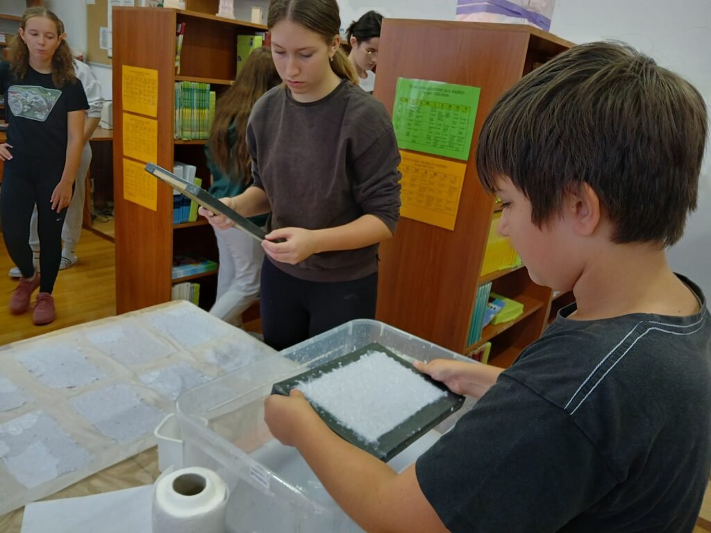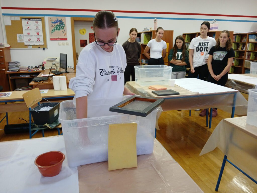 U sklopu radionice, učenici su naučili izraditi papir od recikliranog materijala.