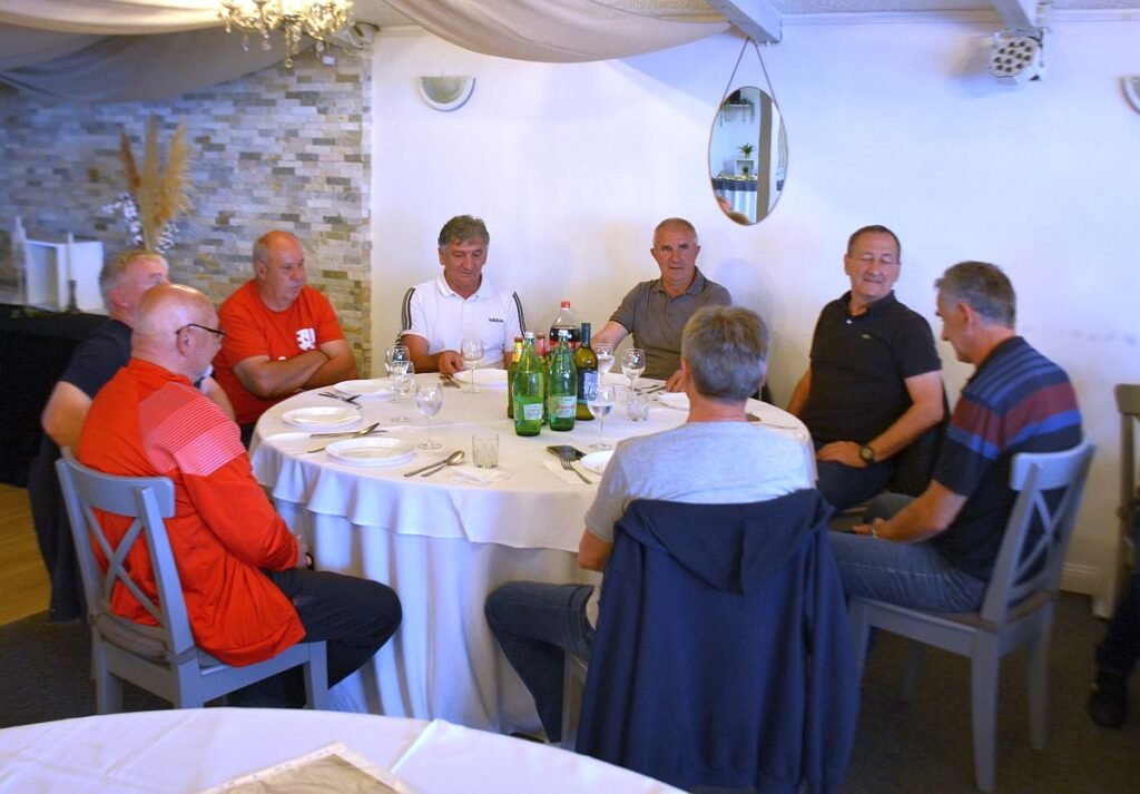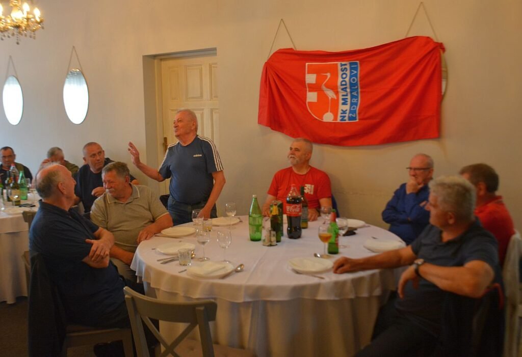 Skup je nastavljen uz prigodni ručak na kojem su evocirane uspomene, pala je pokoja suza, bilo je smijeha, a bilo je i govorancije koju je otvorio trener svih trenera Lazo Marković koji je iz svoje legendarne knjige, zaboravljene na tavanu, čitao sjećanja na kvalifikacijsku utakmicu s Jedinstvom koja je dovela do još nezapamćenog slavlja na Brdu.