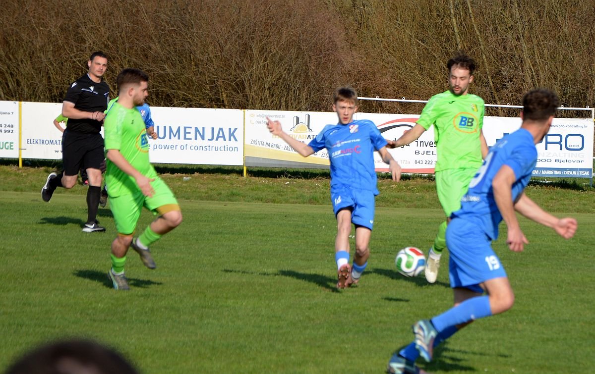 Prvo proljetno kolo otvoreno je velikim iznenađenjem. Nogometaši Bila iz Velike Pisanice upisali su svoj prvi prvenstveni poraz i to kao domaćini. Bolji od Bila bili su nogometaši Ribara iz Končanice koji su pogocima Čuhnila, Batkovića i s hat – trickom Marka Radoje slavili veliku pobjedu rezultatom 0:5.
