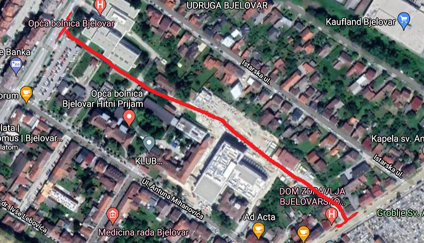 Pojednostavljeno rečeno, nova prometnica presijecat će postojeće bolničko zemljište s ciljem da olakša pristup vozila ka novom zdanju Opće bolnice Bjelovar.
