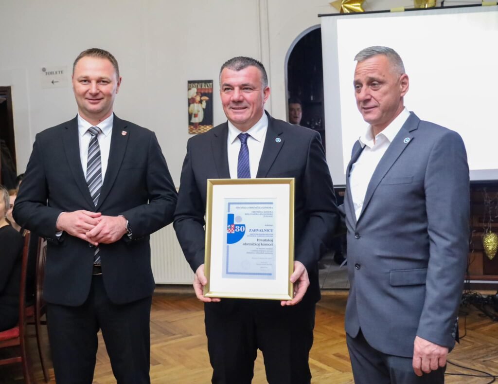 Plaketa Obrtničke komore BBŽ uručena je Romanu Husaku, dok su posebna priznanja dodijeljena predsjedniku Hrvatske obrtničke komore Daliboru Kratohvilu i županu Marku Marušiću.