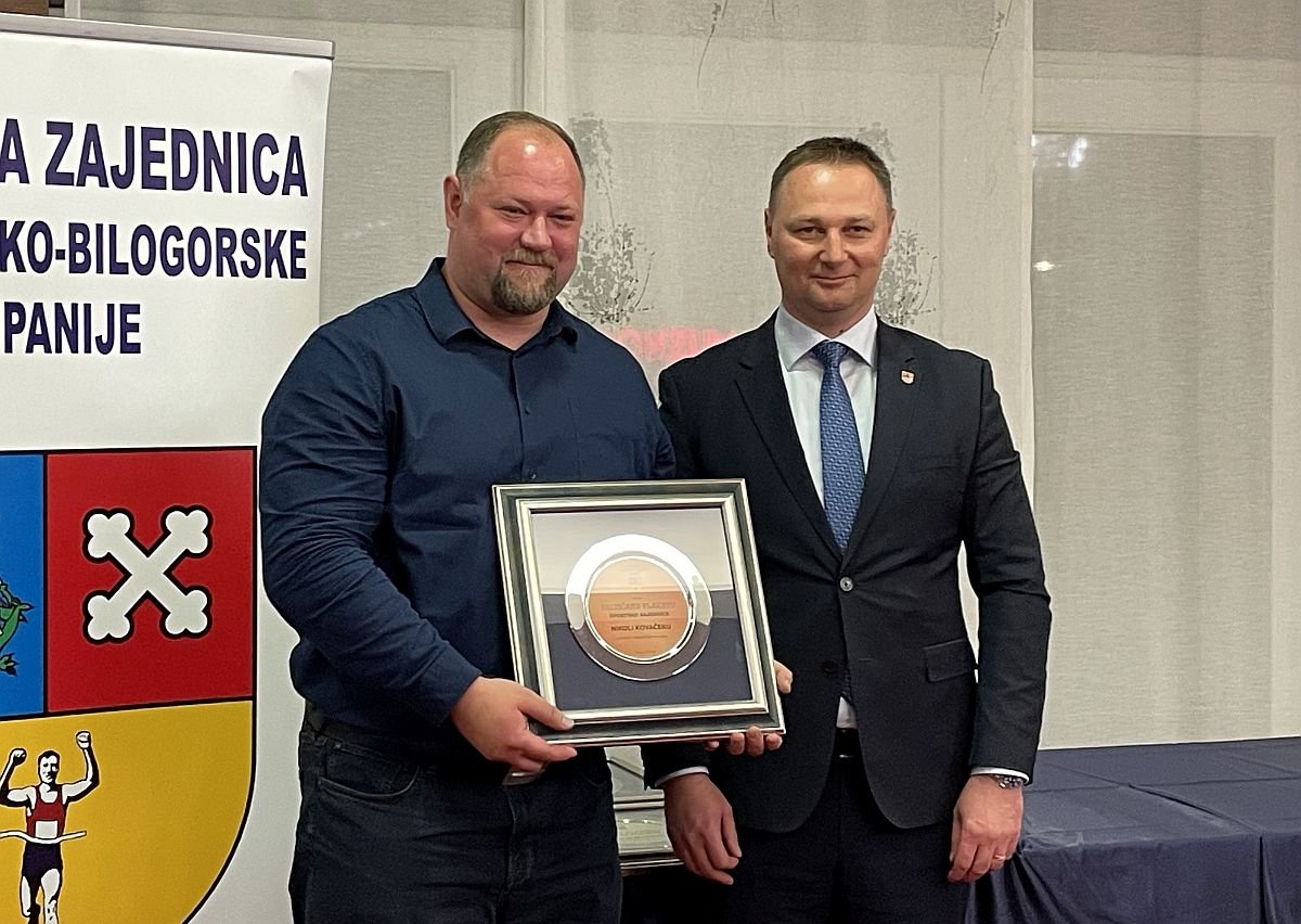 Brončanu plaketu osvojio je NIKOLA KOVAČEK za neumoran rad i uspjehe u atletici u kojoj je i predsjednik atletskog kluba Bjelovar.