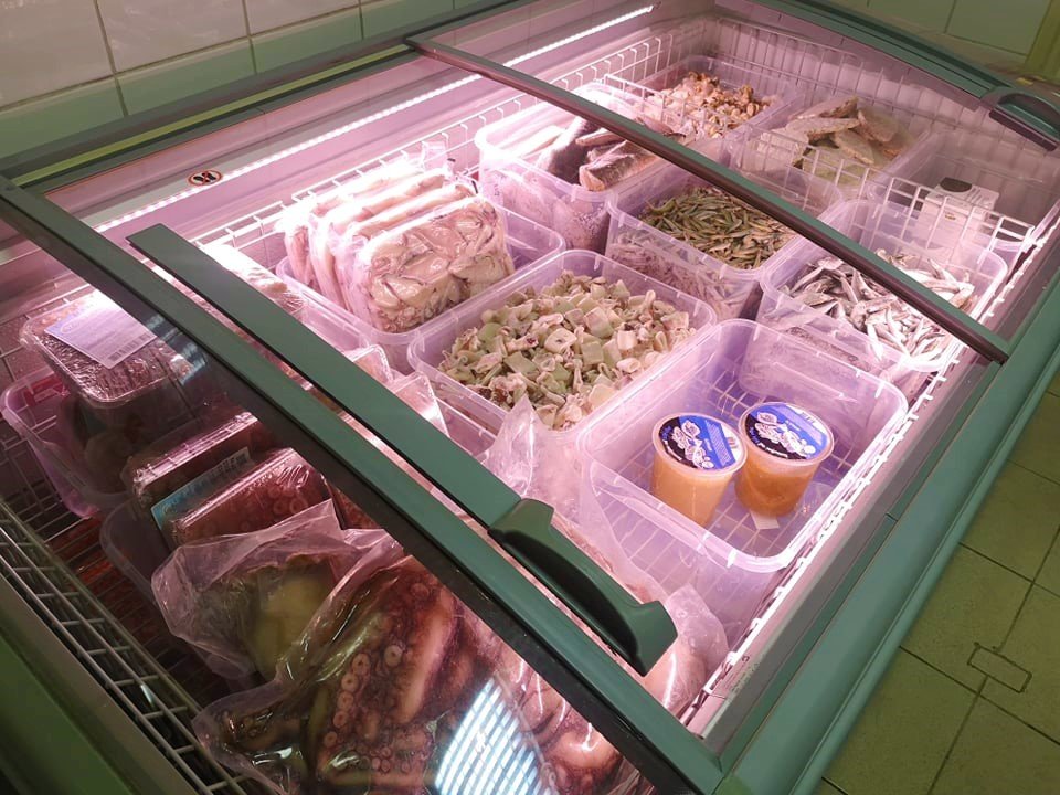 Zavirili smo kratko u unutrašnjost nove ribarnice i ugodno se iznenadili ponudom. U hladnjačama se može naći svega, od hobotnice, gambera i škampi pa sve do ribljih odrezaka, papalina, sušenog bakalara pa čak i gotovog ribljeg temeljca, a kako se moglo čuti uskoro bi se u ponudi mogla naći i svježa riba.