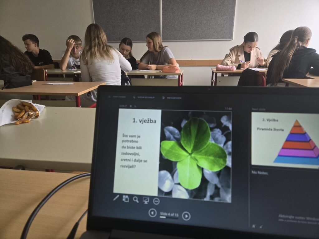 Cilj radionice je jasan: pomoći učenicima prepoznati kada nezdravi izbori služe samo kao ”brza rješenja” za dublje nezadovoljene potrebe, te ih ojačati u donošenju odluka koje čuvaju njihovo mentalno i fizičko zdravlje.