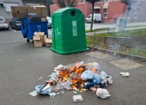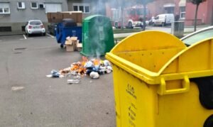Na zelenom otoku u Ulici Janka Draškovića u Bjelovaru, neposredno uz dječji vrtić, upravo se zapalilo se smeće koje se nalazilo pored jednog od kontejnera za smeće.