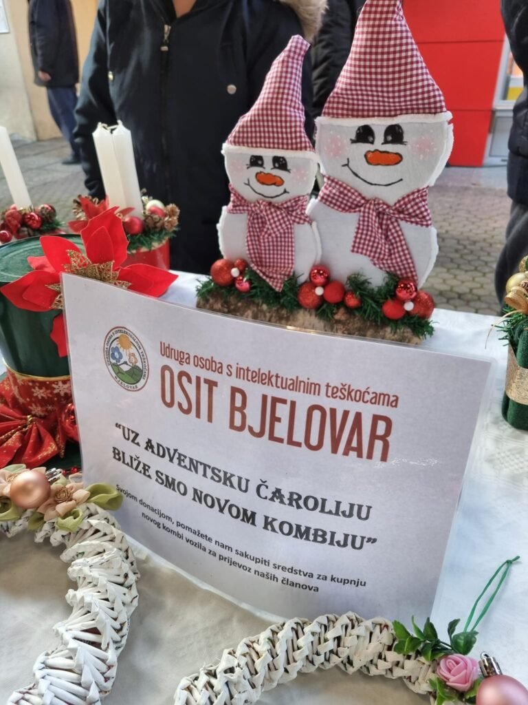 Izložbom božićnih ukrasa koje su sami izradili, članovi udruge Osoba s intelektualnim teškoćama i ove su se subote predstavili sugrađanima na bjelovarskoj tržnici pozivajući ih da donacijama pomognu ostvarenju njihova velikog cilja. Prikupljaju se sredstva za kupnju prijeko potrebnog novog kombi vozila za prijevoz svojih članova.