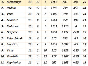 VEDI: I. Sabljić 5, Čizmić 8, Čimbur 13 (1×3), Hunjek 16, S. Zadravec 22, Pandur 13 (1×3), Gavranović, J. Zadravec, Krajinović 4, Stjepanović 7, A. Mamić 2, Vrdoljak 4. TRENER: Dean Krajinović