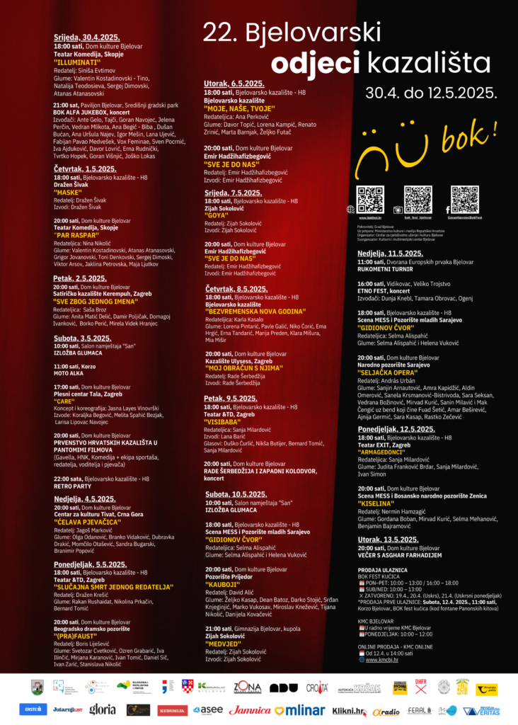 – Uvijek u proljeće stiže kazalište u Bjelovar. Naši Bjelovarčani se uvijek raduje svemu što festival nudi. To nisu samo predstave, već za građane puno više od toga. To je način života. Naredna dva tjedna Bjelovar živi s kazalištem i u kazalištu. Pregršt događaja, evenata, društvenih događaja i večeras imamo otvaranje, večer završavamo s koncertom u središtu grada. BOK fest okuplja mnoge poznate glumce, mnoge građane željnih kulturnih događanja, kao i mnoge renomirane goste. Nadam se da će i ovaj BOK fest proći kako mi svi želimo, a to je glamurozno, lijepo, duhovito i da se svi ugodno osjećamo naredna dva tjedna – poručio je Dario Hrebak, bjelovarski gradonačelnik.
