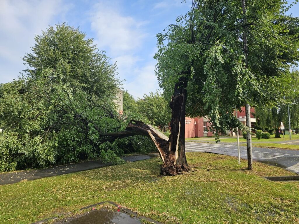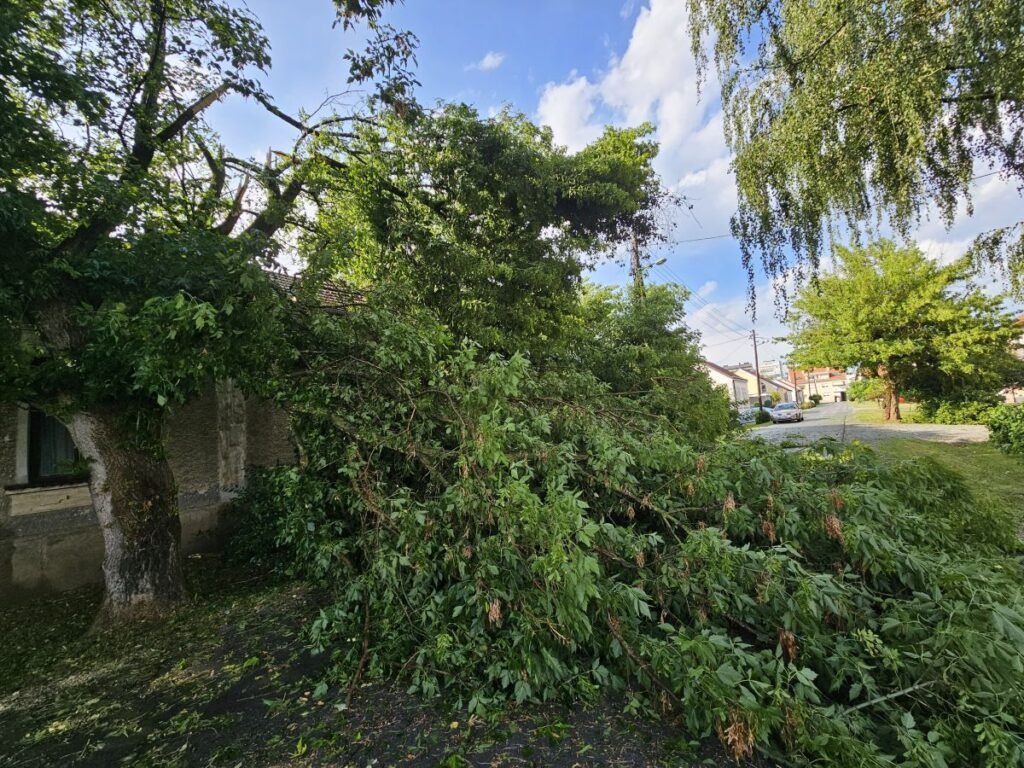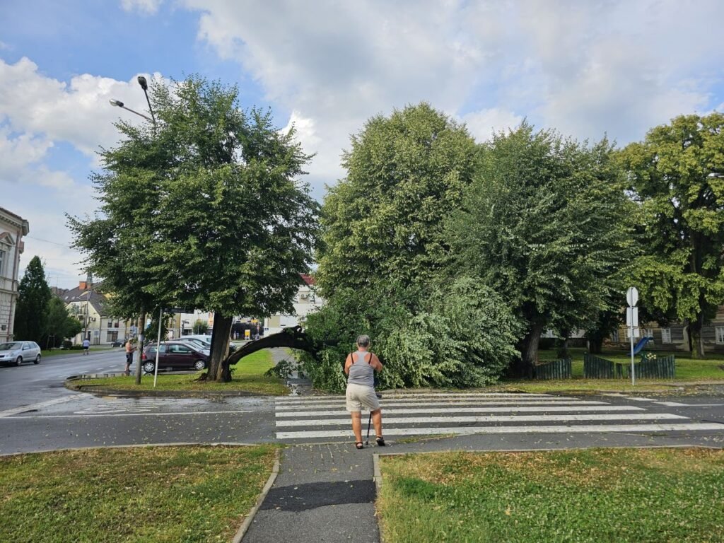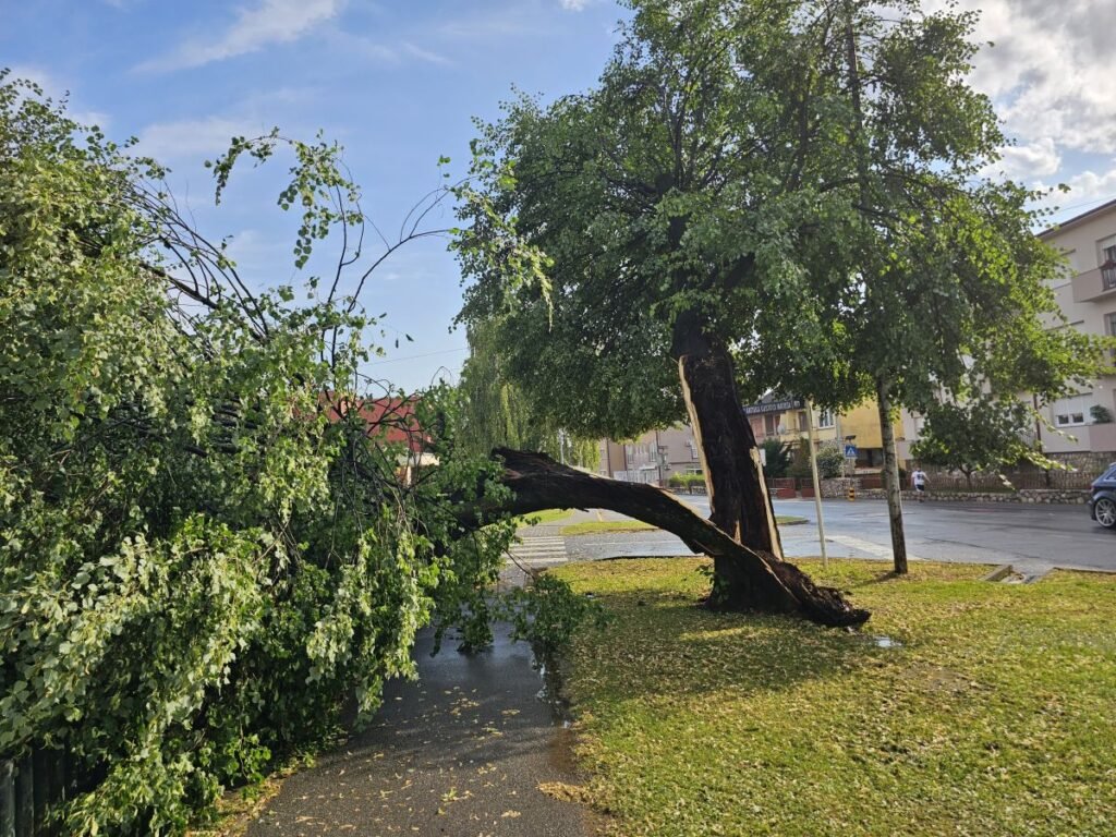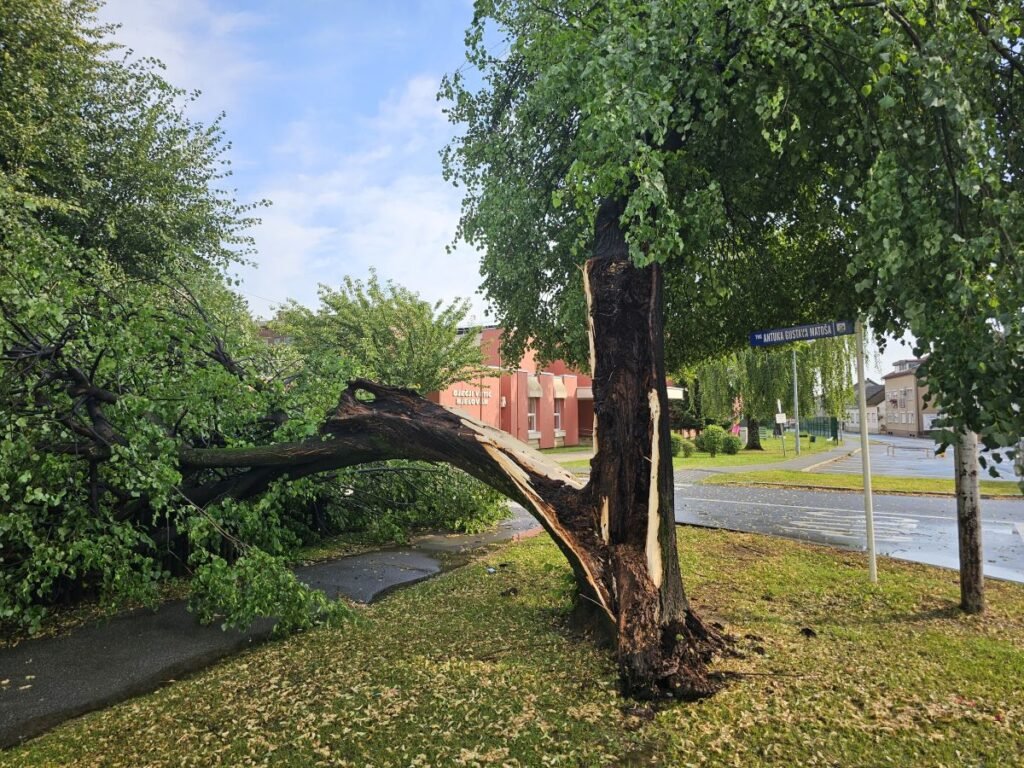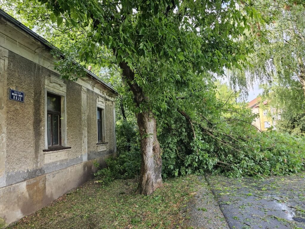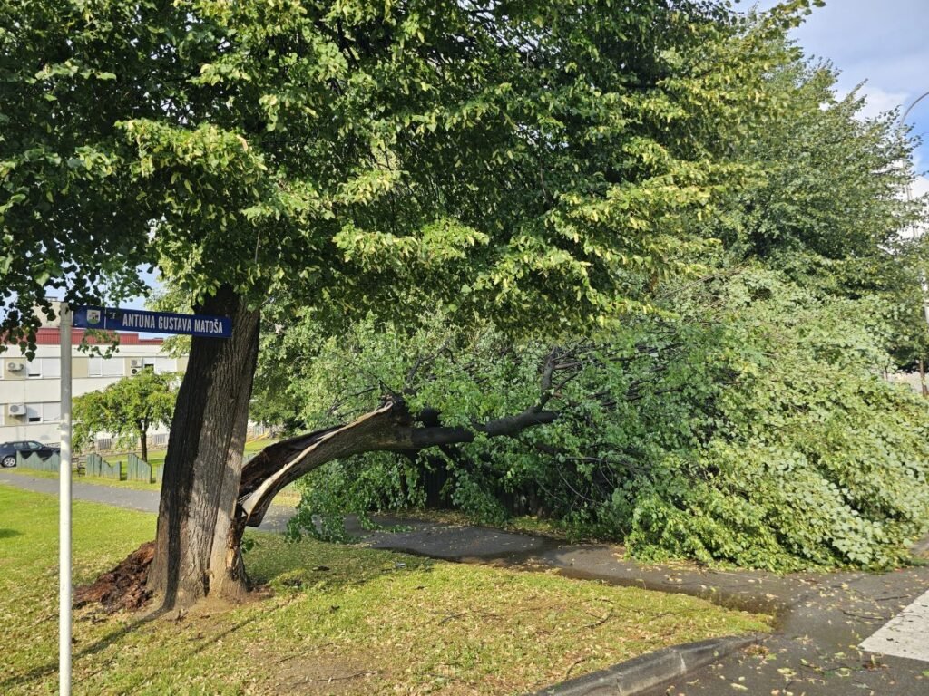 U nekim ulicama silina vjetra je prepolovila velika stabla, a posebice je opasno bilo na Trgu A.G. Matoša. Vjetar je doslovce raskolio stablo koje je palo na dječje igralište doslovce preko puta Dječjeg vrtića.