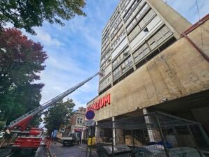 Konkretno, plastična i staklena stijena s drugog kata južne strane nebodera prijeti da će se strovaliti na nogostup.