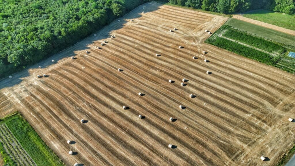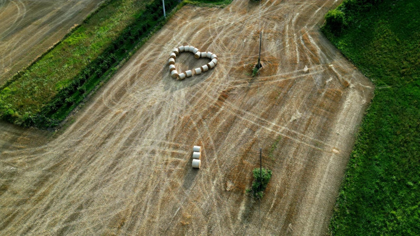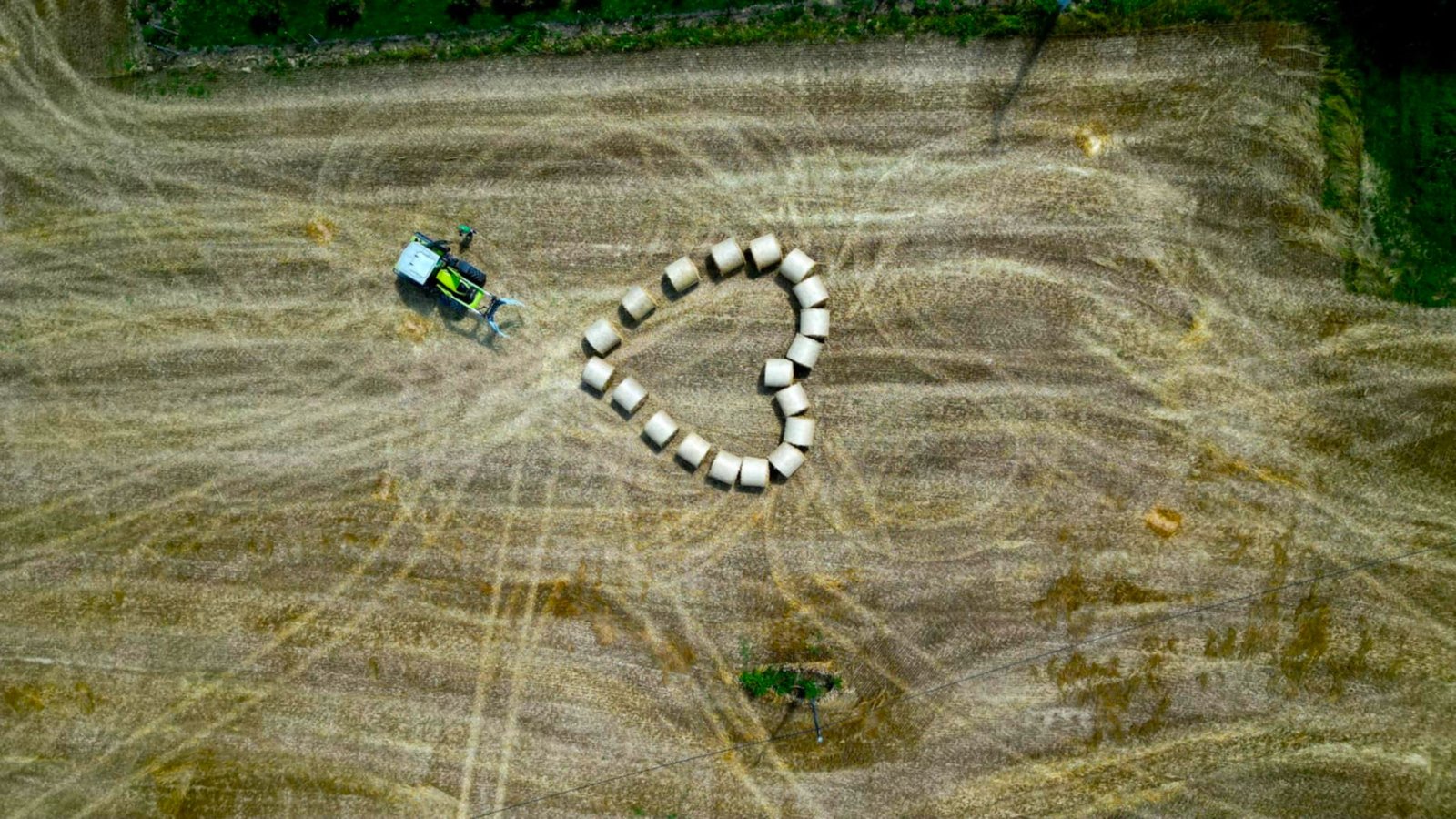 No prije nego što ih je utovario u prikolicu i pospremio, podigao je dron na oko 40 metara visine, stacionirao ga i krenuo u malu pustolovinu – slaganje bala u obliku srca.