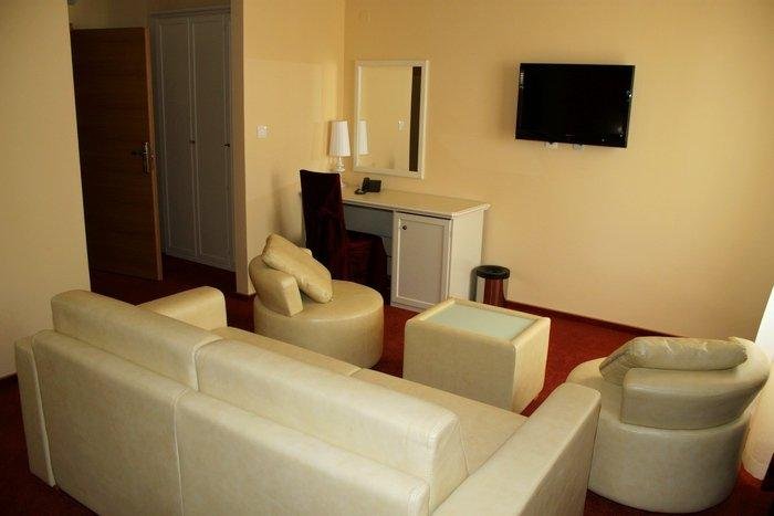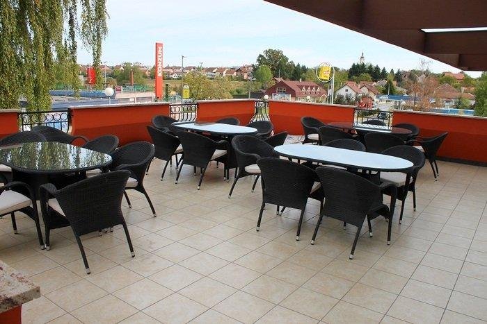 U prizemlju hotela, stoji nadalje u oglasu, nalazi se recepcija, restoran a la carte sa moslavačkim specijalitetima, kafić za pušače, aperitiv bar, sala za dnevne obroke, proizvodni dio slastica, kuhinja, ostavni dio, svadbena sala s 300 sjedećih mjesta, te igraonica za djecu. Ujedno, navodi se kako je tijekom 2013. godine osvježena fasada na hotelu, stavljen je noviji krovni pokrov, PVC vanjska stolarija, novouređene su sobe, kupaonice…