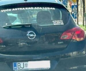 U Fejs grupi ”Prometne zgode i nezgode” izašla je fotografija Opela s bjelovarskim registracijama čiji je vlasnik na zadnje staklo zalijepio naljepnicu ”Vuče Astra kao Aca Lukas’’.