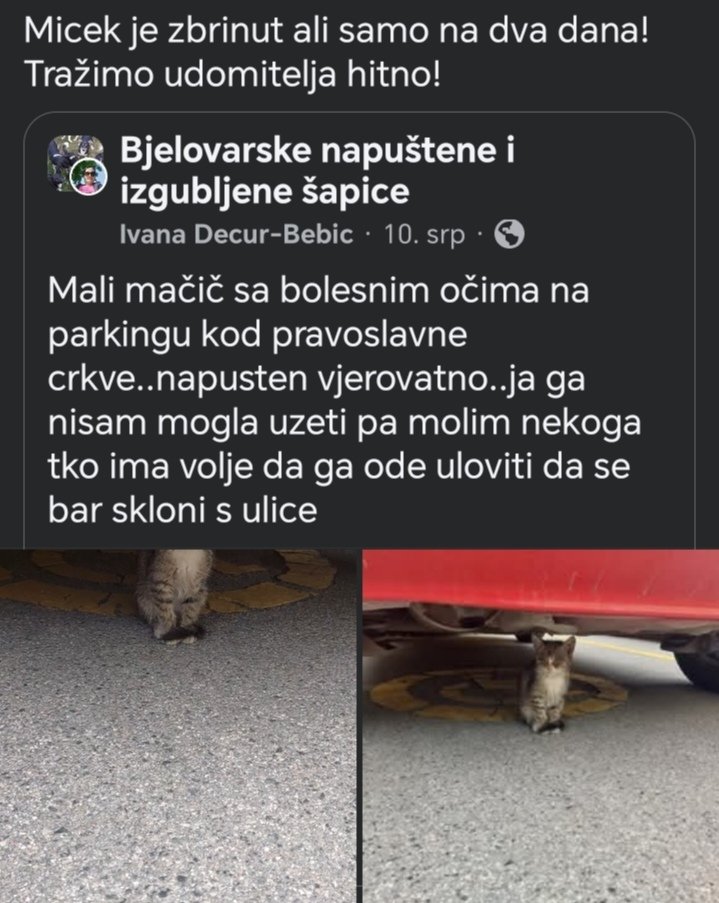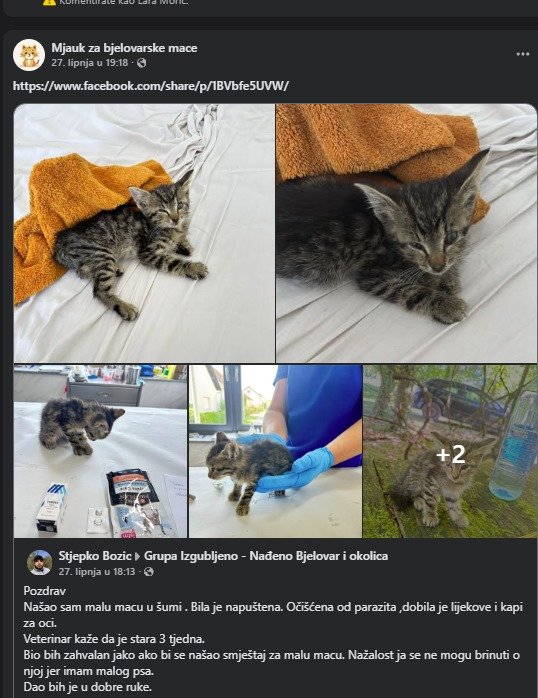 – U posljednjih nekoliko mjeseci primjećujemo značajan porast napuštanja mačaka, kako odraslih, tako i tek rođenih mačića. Sve češće nailazimo na pothranjene, bolesne ili ozlijeđene životinje ostavljene uz prometnice, u dvorištima, parkovima ili u blizini kontejnera. Nekolicina nas već ih zbrinjava o vlastitom trošku – plaćamo veterinarske preglede, liječenja, kastracije i privremeni smještaj u našim domovima – istaknuli su iz grupe.