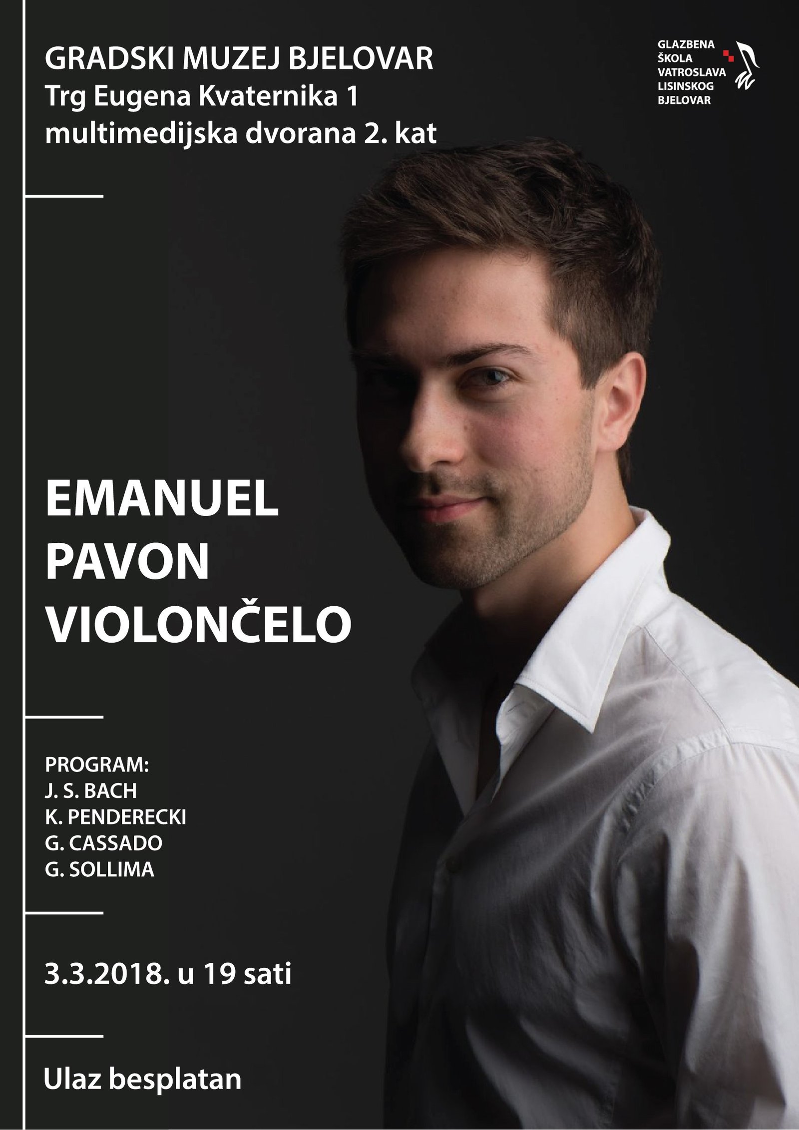 Mladi violončelist Emanuel Pavon danas kao solist nastupa u multimedijskoj dvorani Gradskog muzeja u Bjelovaru. Koncert je zakazan za 19 sati, a ulaz je besplatan.