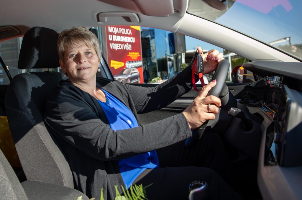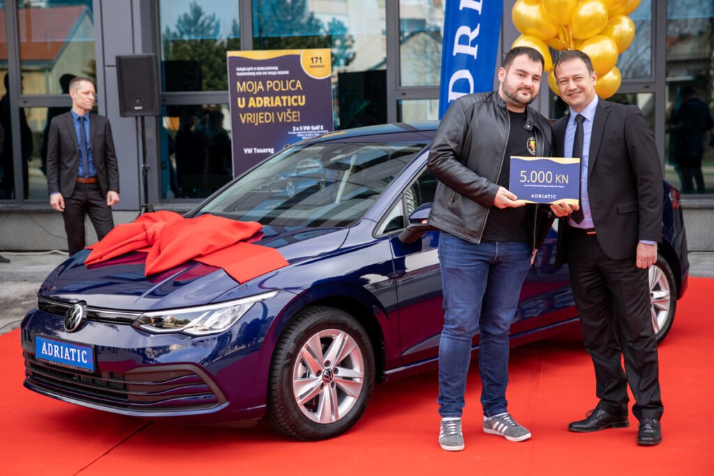 U Koprivnici ispred poslovne zgrade Adriatic osiguranja Bruni Kelekoviću ključeve novog Golfa 8 uručila je direktorica Podružnice Koprivnica Željka Bijač.