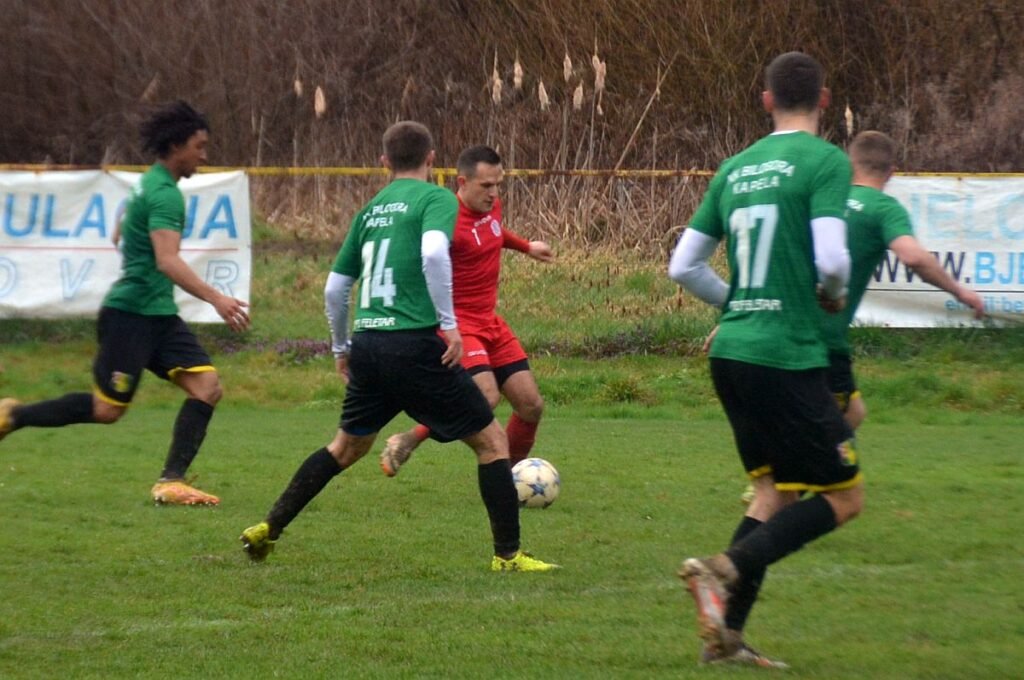 Bilogora iz Kapele gubi korak za prvakom Daruvarom. Dvoboj s Ribarima iz Končanice otvorili su znatno oslabljeni bez čak šestorice stožernih igrača što se osjetilo na njihovoj igri. Usprkos svemu Bilogora je pogotkom Marina Sabljića u 70. minuti povela s 1:0, međutim, samo sedam minuta kasnije Ribar je preko Adrijana Ročeka, koji je nedugo prije toga u igru ušao s klupe, izjednačio na konačnih 1:1.